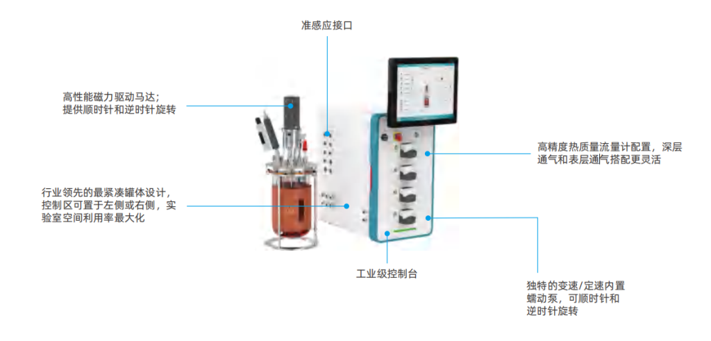 搭配摇摆床,实现自动气体控制、温度调节、营养补给与废液排出,适用于从研发至中试放大的连续转化。